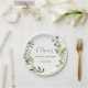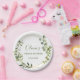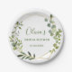 Prato de Papel para Chá de Noiva com Moldura Geométrica de Eucalipto Moderno.