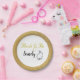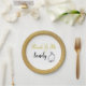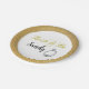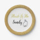Esta placa de papel da futura noiva dourada contém um anel de noivado prateado e o nome da noiva. Um design de ouro-chic perfeito para um chá de panela moderno. Mostrado é um prato para aperitivos ou deserto. Também está disponível um tamanho de entrada ou uma tigela maior. Escolha a placa de papel adequada às suas necessidades.