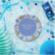 Placas bonito de papel para chá de panela, feitas em azul branco e de girassol, com flores de milho cercando uma área de texto azul. Personalize o texto branco personalizado para ler o que você deseja. Os convites correspondentes estão disponíveis.