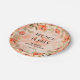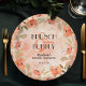 Lindas flores cor-de-laranja e folhas elegantes destacam essas placas de papel brunch e pratos de chá de panela borbulhante personalizados com o nome e a data da festa da noiva. CORRESPONDENTE a itens na nossa coleção.