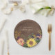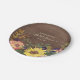 Celebrar a noiva em estilo com esta elegante placa de papel de chá de panela rústico. Apresentando um fundo falso de madeira com um arranjo floral vibrante de girassóis de cor d'água, flores silvestres e verde em tons profundos de joias. Personalize com o nome da noiva e a data do chá. Perfeito para o país, queda ou bronze, almoço e encontros de noivas com tema duplo. Na moda e prático para sobremesas ou aperitivos.
