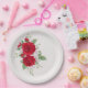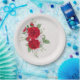 Uma placa de chá de panela no estilo bonito do país que mostra elegância simples. Rosas de aquarela vermelha e branca e flores em branco. Este é um belo prato, único e do tipo Convites e guardanapos disponíveis na minha loja