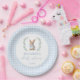 Prato De Papel Chá do bebê gingham Páscoa coelho azul