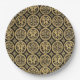 Conjunto de oito placas de papel de 9 polegadas com uma imagem de círculos negros e dourados calcedonianos com duas parafinas mitológicas, alternando com outras que têm um design floral.