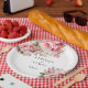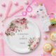 Este prato de papel desenhado para o casamento é mostrado com um impressão romântico de pénia rosa. Também oferecemos um guardanapo de papel equivalente. Personalize este item e altere o texto do exemplo para o seu com este modelo. Imagem licenciada