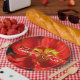 Chapas personalizadas e elegantes de papel de casamento, com delicada flor de tulipa vermelha e amarela.