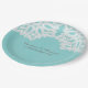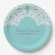 Placas de papel de casamento de rendas elementares simples e sofisticadas, com um lugar branco, com um toque suave em um fundo de papel de vintage falso e turquesa leve. Estes pratos clássicos e na moda são perfeitos para um casamento rústico. Fácil de personalizar com seus detalhes de casamento. Clique em "Personalizar" para encontrar mais opções de personalização.
