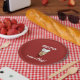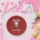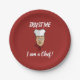 Cabeça de chef com chapéu, corcunda vermelha e texto personalizado.