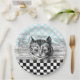 Conjunto de oito placas de papel de 9 polegadas com uma imagem vintage de Alice no malicioso Gato Cheshire da Wonderland em uma cinza e fundo azul-claro de tabuleiro de xadrez. Veja pote de doces, espresso, arremessador, bule de chá e portas copos correspondentes. Veja toda a coleção Wonderland Plate na COMIDA/BEV | Seção pratos.