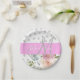 Prato De Papel Chic & Girly Floral White Pink Cinza Monograma Nom