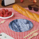 Prato De Papel Chic Moderno da Rocha Marble Azul e Branco