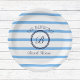 Personalize esta placa de papel White e Light Blue Stripes com o seu Monograma e Nome da Família e adicione um Toque Chic ao seu Tableware Beach House. Também ideal para uma festa de casa de praia ou para a festa do aquecimento doméstico de praia.
