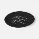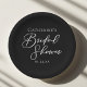 Este elegante prato de papel para festa de noiva preta apresenta uma bela tipografia branca para uma festa noturna no inverno. A escrita minimalista é uma tendência moderna para uma noiva contemporânea.