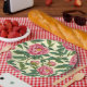 Prato De Papel Chinoiserie rosa, verde e amarela Floral