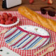 Prato De Papel Christmas Paper Plates – Blue, Red & Gold Stripes