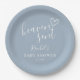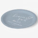 Um prato de papel moderno e minimalista para festa de bebê com um coração desenhado à mão e tipografia estilosa em um fundo azul poeirento. Criado por Thisisnotme©
