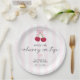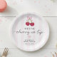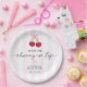 Tema "Ela é a Cereja no Topo" chá de noiva com pratos de papel personalizados com design coquette de laço rosa