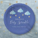 Com nuvens azuis fofas e estrelas douradas em cordas, em um fundo azul, esses pratos de papel bonitos são perfeitos para um chuvinha de bebê menino especial, chuvinha ou chuvinha de casal. Criado por Thisisnotme©