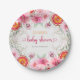 Prato De Papel Chuva de Flores em Aquarela Citrino e Rosa - Chá d