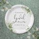 Este prato de papel para chuva de noiva com folhagem botânica elegante pode ser personalizado com suas informações em tipografia chic. Projetado por Thisisnotme©