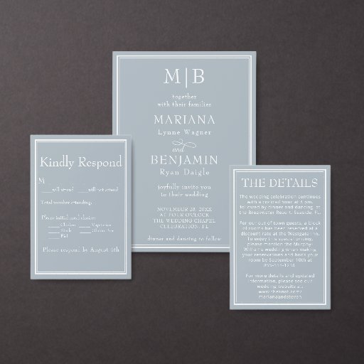 Placas modernas de papel de casamento para sua recepção de casamento, janto de ensaio e chá de panela na cinza de luz minimalista ou tema de cinza.