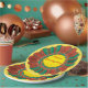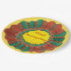 Prato De Papel Circular Dourada Verde Laranja Geométrica de Ação