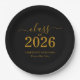 Stylish elegant custom graduation party supply! Celebrate the graduate's accomplishment in style with this trendy graduation paper plates. Design features "Class of 2026" in gold font on a classic black background. Personalize this product by adding the name and school name. Easy to customize. Matching graduation party supplies available. Congratulations!