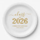 Stylish elegant custom graduation party supply! Celebrate the graduate's accomplishment in style with this trendy graduation paper plates. Design features "Class of 2026" in gold font on a clean white background. Personalize this product by adding the name and school name. Easy to customize. Matching graduation party supplies available.