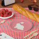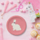Prato De Papel Coelhinho com Flores de Papel de Festas Rosa