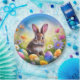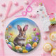 Torne a sua celebração de Páscoa muito especial com esta adorável placa de papel, com uma encantadora pintura aquosa de um belo coelho marrom num campo de flores vibrantes de primavera e ovos coloridos de Páscoa. Perfeito para Páscoas, caçadas de ovos e refeições festivas familiares, esta placa adiciona um toque alegre e caprichoso à sua mesa. Uma maneira deliciosa de servir doces e celebrar a alegria da Páscoa!