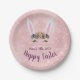 Cute Blush Pink e Burgundy Sparkle Plates do Partido Bunny para uma família ou escola Festa de Páscoas Bunny. A mensagem ou data pode ser atualizada no Felz pascoa mágico Bunny Plates.
