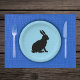 Esta placa de papel é azul claro com um coelho coelho feito em silhueta preta numa posição sentada. Excelente de estilo minimalista para comemorações de Páscoa ou primavera.