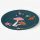 Prato De Papel Cogumelos e Flores Retro Dos Anos 70 Marinho Azul