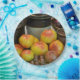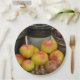 Estas placas de papel apresentam uma abundante colheita de Verão de tomate herbáceo listrado vermelho e amarelo. Excelente para o país se reunir!
