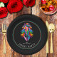 Uma cabeça de cavalo de corrida colorida brilhante e um mano em fundo preto são apresentados nestas placas de papel do partido derby. CORRESPONDENTE a itens na nossa coleção.