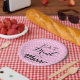 Prato De Papel Coma, Beba e Alegre-se | padrão de bolinhas