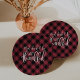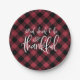 Serve as guloseimas de Ação de Graças nestas placas de papel de xadrez vermelho e preto de morango de arango festivo, com "comer, beber e ser grato" em um guião branco, escrito à mão, acentuado com grampos de folhas de outono.