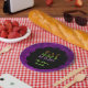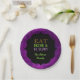 Prato De Papel Coma Bebida e Assuste o Dia das Bruxas Roxo