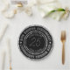 Elegante prato comemorativo do aniversário de 25 com texto personalizável. Prata metálica e preto. Acentos de diamantes brancos.