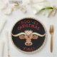 Brilhe a sua Mesa de Natal com estes Pratos do Partido "Um dos Tipos"! Este Comigo Longhorn Steer está te desejando um... "Moo~ey Natal Y'all"! Belas Artes Original do Artista Kerry Miller.