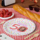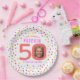 Prato De Papel confetti coral e foto rosa de 50 anos