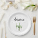 Placa de papel do Sudoeste do Deserto, com um design de cacto saguaro verde sobre fundo branco. Com letras negras personalizáveis de tipografia, você pode adicionar seu próprio texto. Excelente para adicionar um toque de Arizona aos acessórios da sua festa.