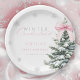 Celebrate in style with these personalized plates snowy pine trees and pink bows. Perfect for a Winter Onederland themed first birthday.