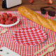 Prato De Papel Cor-de-rosa e vermelho verificados