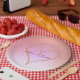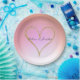 Prato De Papel Coração com Brilho Dourado Tom Gradiente Rosa