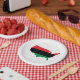 Prato De Papel Cores vermelhas, pretas & verdes do _do