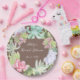 Adicione um toque de charme do deserto à decoração da sua mesa com um design que captura a beleza moderna de botânicos do deserto, tornando-o ideal para um chá de noiva sofisticado e memorável. Este prato de papel apresenta uma linda coroa de aquarela, meticulosamente criada com suculentas em uma deliciosa variedade de tons verde-claro, verde-escuro rico e delicados tons de rosa. Essas suculentas vibrantes sobressaem lindamente contra um fundo marrom suave, criando uma paleta sofisticada e harmoniosa. Altere facilmente os detalhes para os seus e, se desejar, altere o estilo, tamanho, cor e posicionamento da fonte.