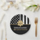 Este design apresenta uma bandeira de oficial de correções com faixas pretas e brancas, e uma faixa fina de prata também. Esta design é excelente por mostrar apreço a um oficial comemorando um aniversário ou agradecendo a um oficial aposentado, tenentes, guardas, conselheiros, administradores e muito mais pelos seus anos de serviço. Personalize com o estado em que serviam também!