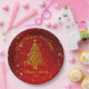 Prata de 9" - Feliz Natal - Mude a Mensagem e o NOME / Ano neste Vermelho com a Dourada Árvore e Estrelas Design - - - - - Veja na minha loja mais itens com esta design, incluindo Pratas, Nápoles, Portas copos, Balões, Bunting, Desserts, Caixas de Favor e muito mais definições de mesa e vestidos.