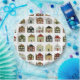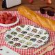 Pratos de festa temáticos de imóveis com casas coloridas para celebração do corretor, casa aberta ou aniversário.